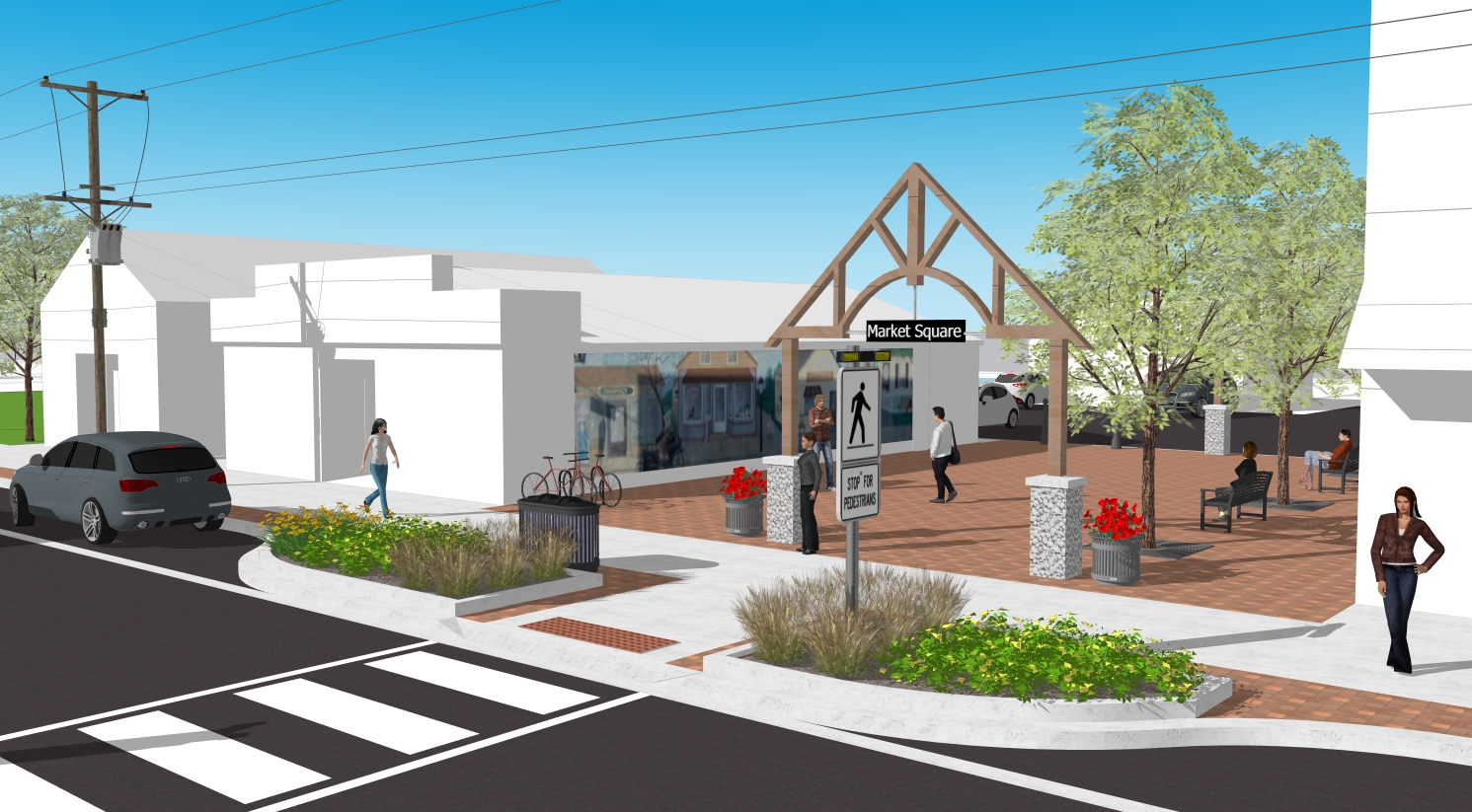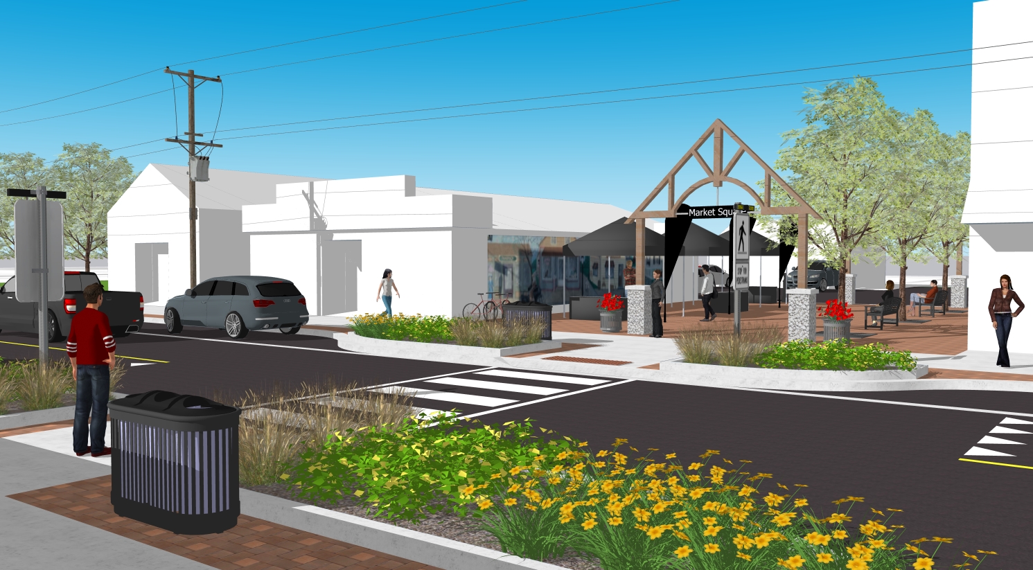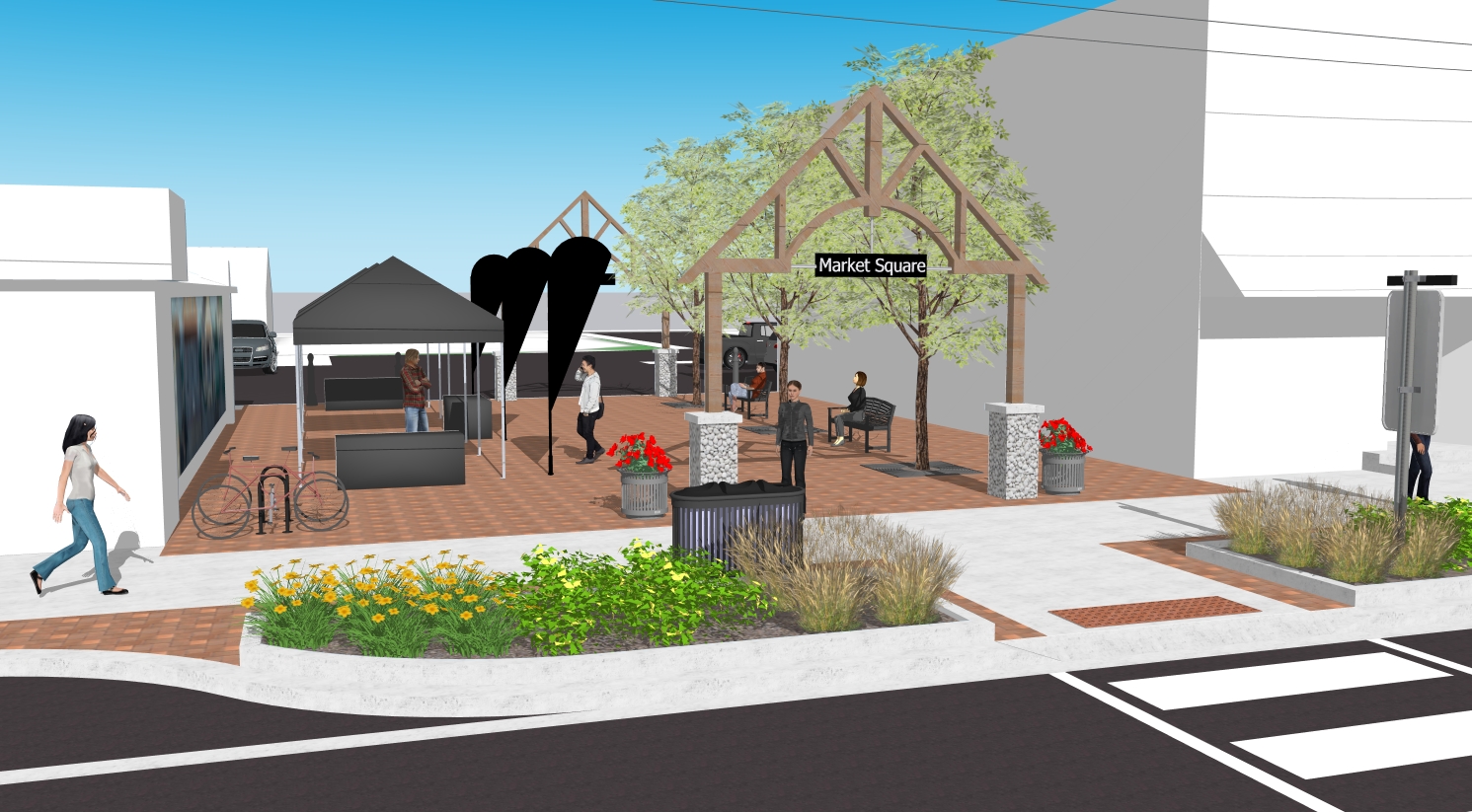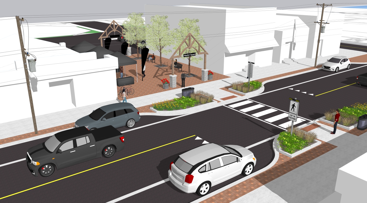 - Streetscaping in the downtown BIA – Flexible mountable curbs, pedestrian-friendly bump-outs and the reconfiguration of Market Square Crescent into a more usable public space.