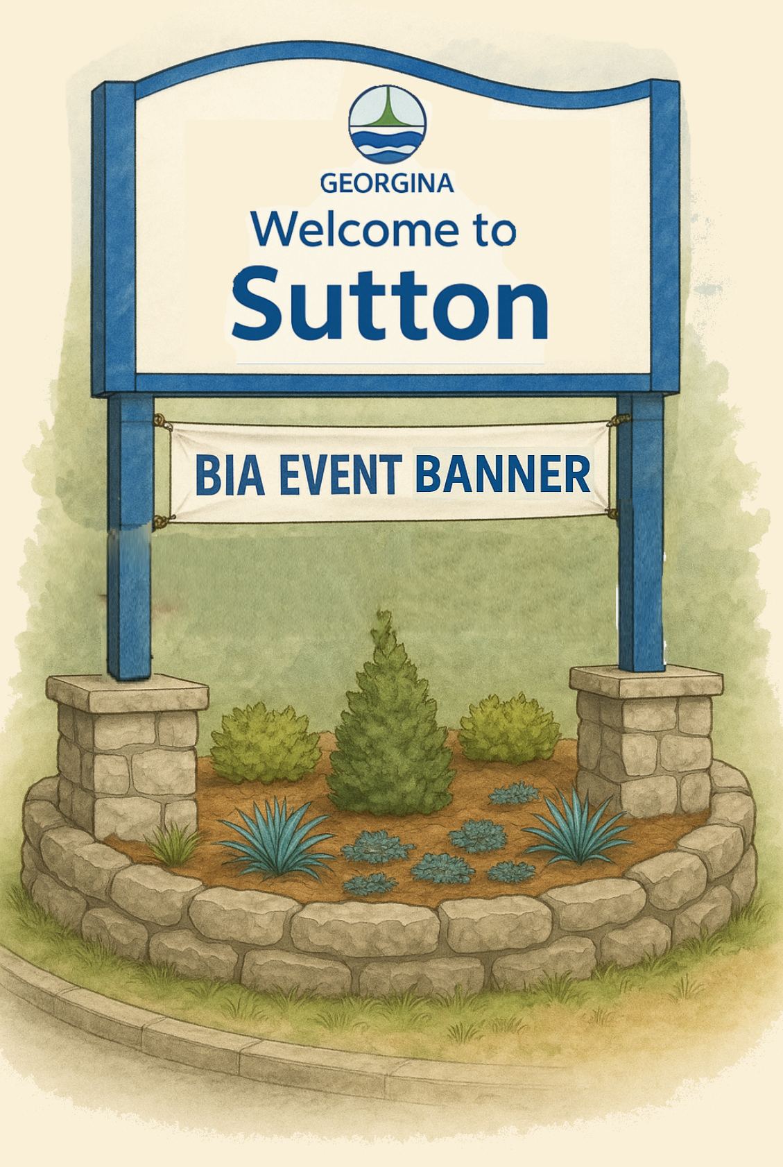 - Gateway feature – A new wayfinding-style entrance sign near Highway 48 to welcome people to downtown Sutton.