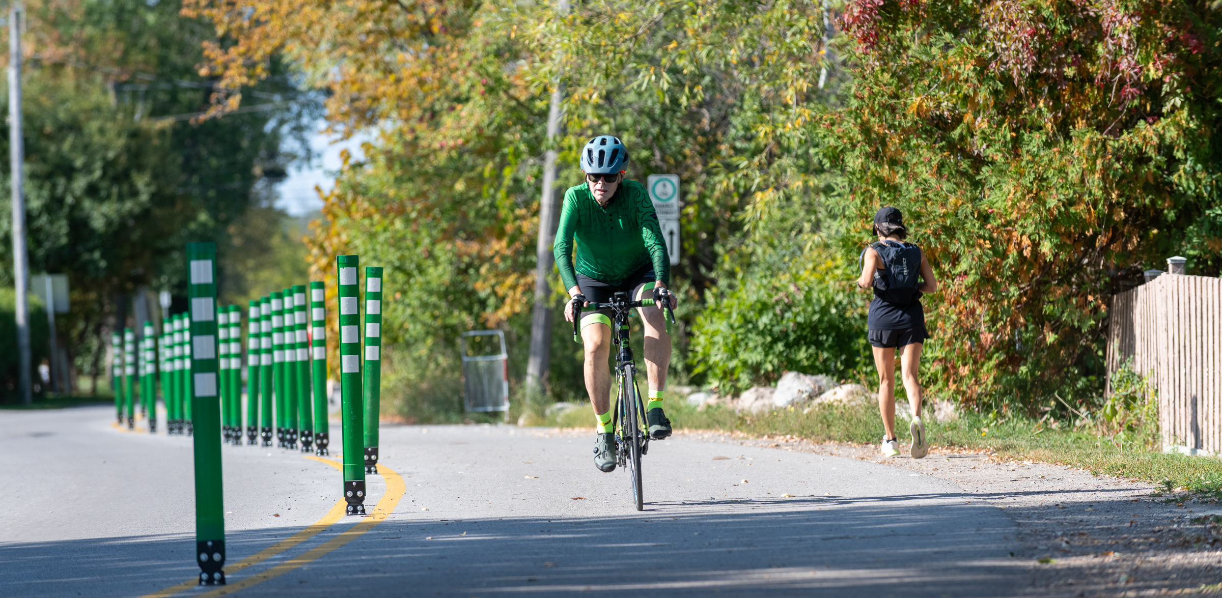 Yes, passive cyclists can use the multi-use pathway along with pedestrians. Cyclists can also use the vehicle lane. In Ontario, cyclists are legally permitted to use a vehicle lane. Find out more about sharing the road at ontario.ca.